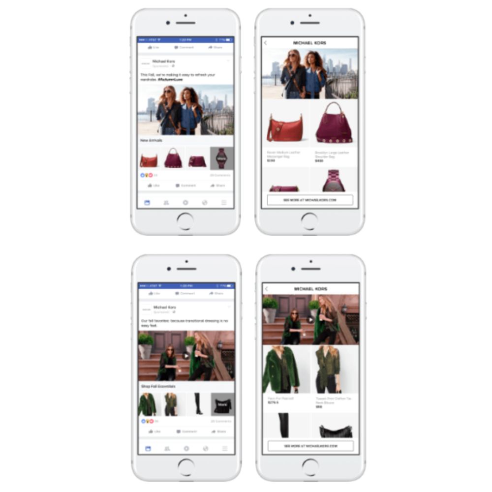 • Collections: Collections combine a cover image or video with multiple product images. When users click on the ad, they are redirected to explore the products further.