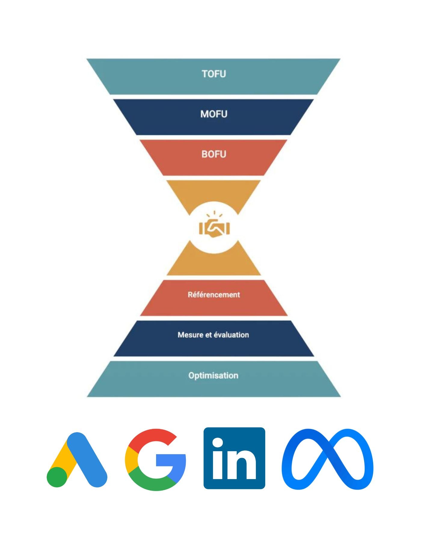 The Bofu Method in search advertising adopts a strategic omnichannel approach, starting with brand search, thus targeting the intentions closest to your products or services. We prioritize optimal positioning in searches, ensuring constant visibility in front of our prospects. This visibility is maintained thanks to retargeting (remarketing) in search, or via display and video, depending on the volume of traffic.