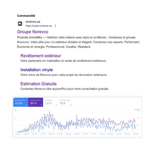 The winning strategy was based on a powerful combination of Google Ads to capture active demand, Meta Ads (Facebook and Instagram) to amplify awareness and engagement, and an advanced SEO strategy focused on the services, products and brands distributed. This comprehensive approach not only increased qualified traffic to the online store, but also reinforced Norevco’s visibility as a leader in the exterior cladding sector.