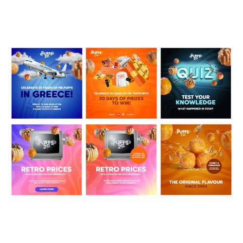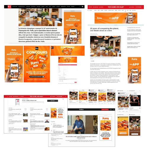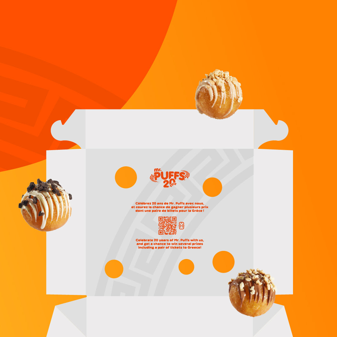 To celebrate its 20th anniversary, Mr. Puffs launched an exceptional campaign that captivated and thanked its loyal customers. Since its founding in 2004, the company has grown to become a beloved brand, and this anniversary was the perfect opportunity to mark the occasion. For 20 days, an exciting contest was organized in partnership with prestigious brands like Uber, Illy, and Natrel, offering fantastic prizes, including a grand trip to Greece totalling over 25 million impressions.