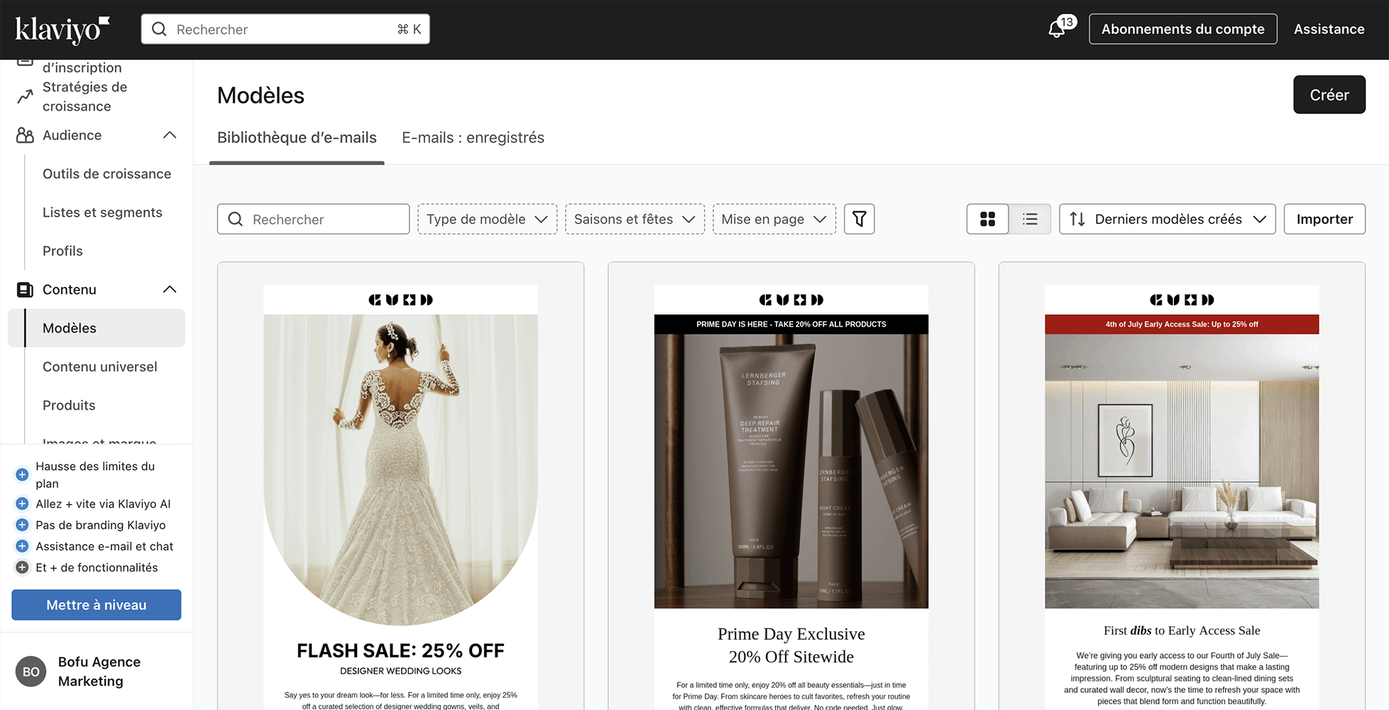 La personalización es crucial para captar la atención. Usar el nombre del destinatario , enviar recomendaciones de productos basadas en compras anteriores u ofrecer descuentos personalizados son técnicas eficaces. Bofu utiliza Klaviyo para personalizar automáticamente los mensajes según el comportamiento de sus suscriptores.